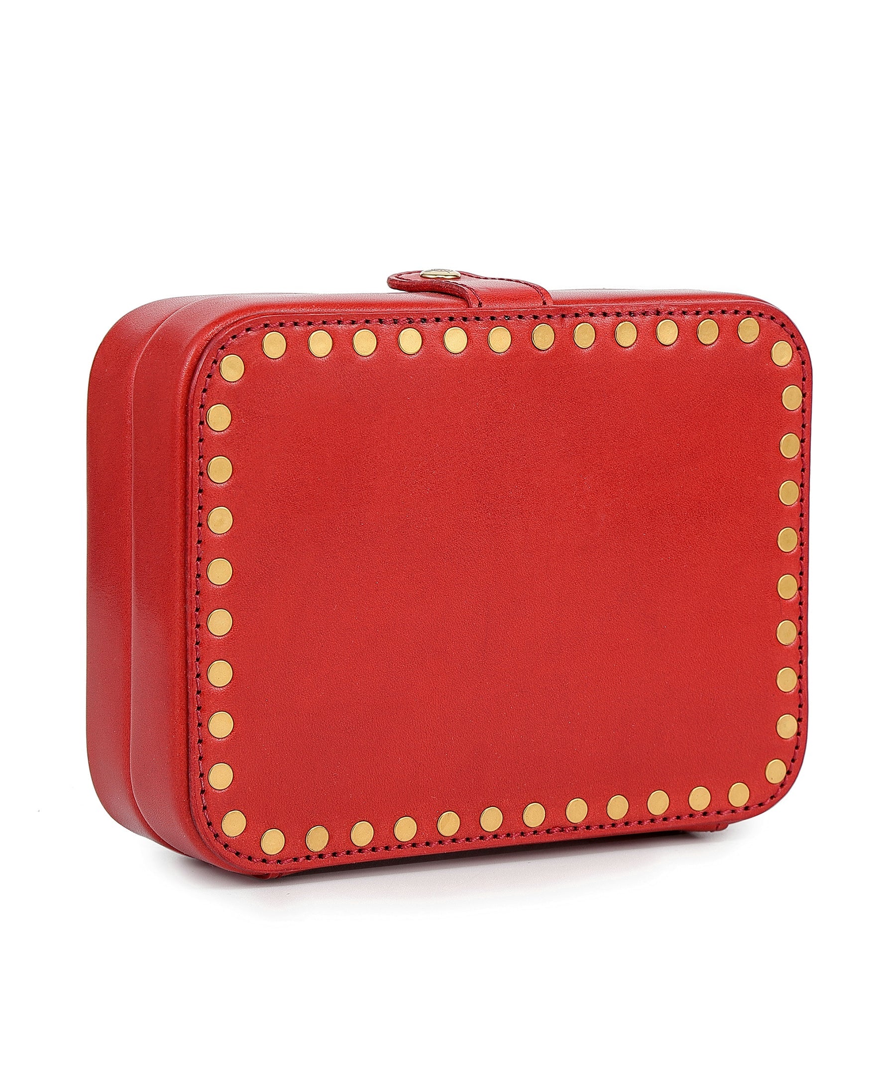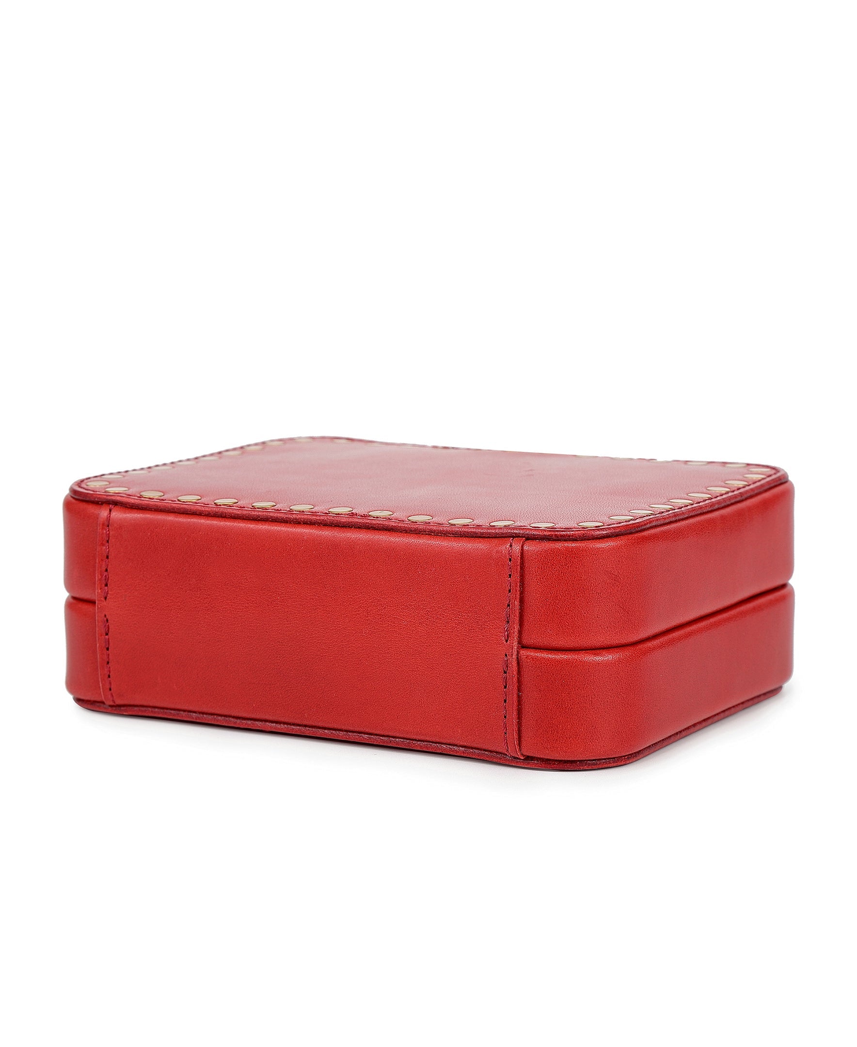 Our Leather Jewelry Storage Box is a timeless piece for your jewelry, crafted from our distinctly smooth signature genuine leather. Open or closed, the unique solid brass studs and trims will always make a statement. Lightweight, solid, and secure, you'll always have the confidence to take it with you on your travels.